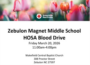 Zebulon Magnet Middle School HOSA American Red Cross Blood Drive